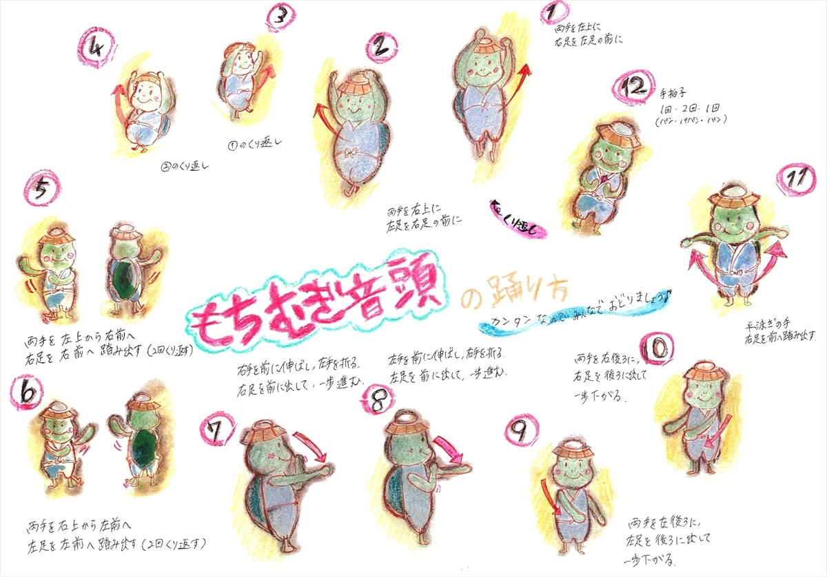 子どもから高齢者まで親しみやすい一曲となっており、振り付けは文化センターで活動する民踊会(代表:水田一江さん)が担当しました。