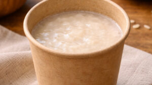- 鍋にもち⻨とたっぷりの⽔を⼊れて、中⽕(煮⽴つ位の⽕加減)で20〜30分ゆでる。